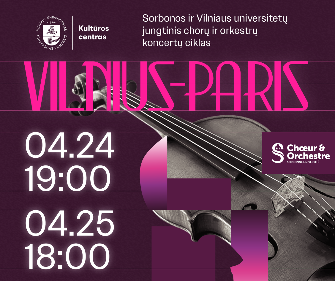 Pirmajame koncertų ciklo „Vilnius–Paris“ vakare, balandžio 24 d. 19 val. Šv. Jonų bažnyčioje skambės a cappella chorinės muzikos programa, atskleidžianti žmogaus balso galimybių įvairovę – nuo subtilių tembrų ir skaidrių harmonijų iki intensyvios kūrinių dramaturgijos. Koncerte pasirodys Sorbonos universiteto choras COSU (vyriausiasis dirigentas Nicolas Agullo, meno vadovas ir dirigentas Frédéric Pineau) ir Vilniaus universiteto chorai „Virgo“, „Gaudeamus“ ir „Pro Musica“ (meno vadovė ir dirigentė Rasa Gelgotienė).
